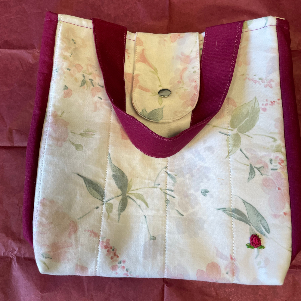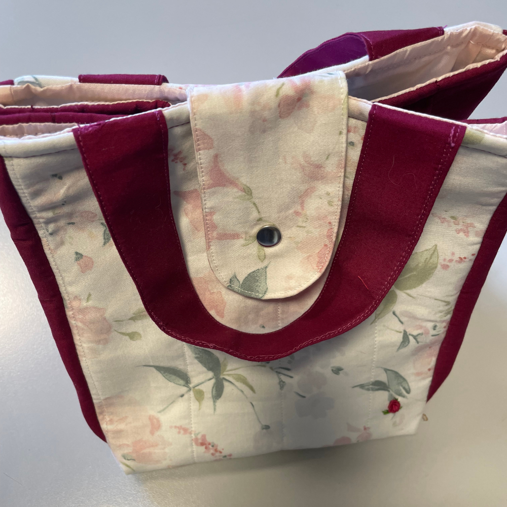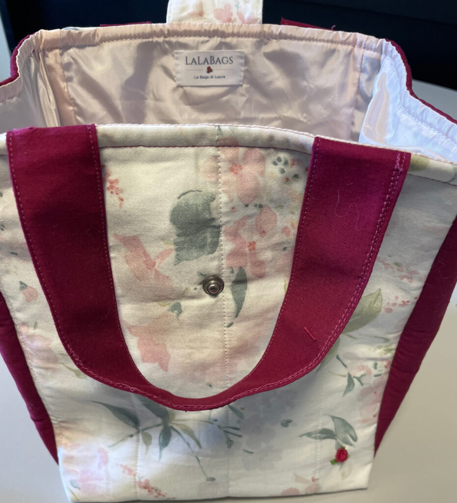 Borsa per contenere il pranzo, pratica ed elegante in cotone trapuntato, interamente foderata con materiale idrorepellente. Misura: L 22 cm., H 23 cm., P 22 cm.