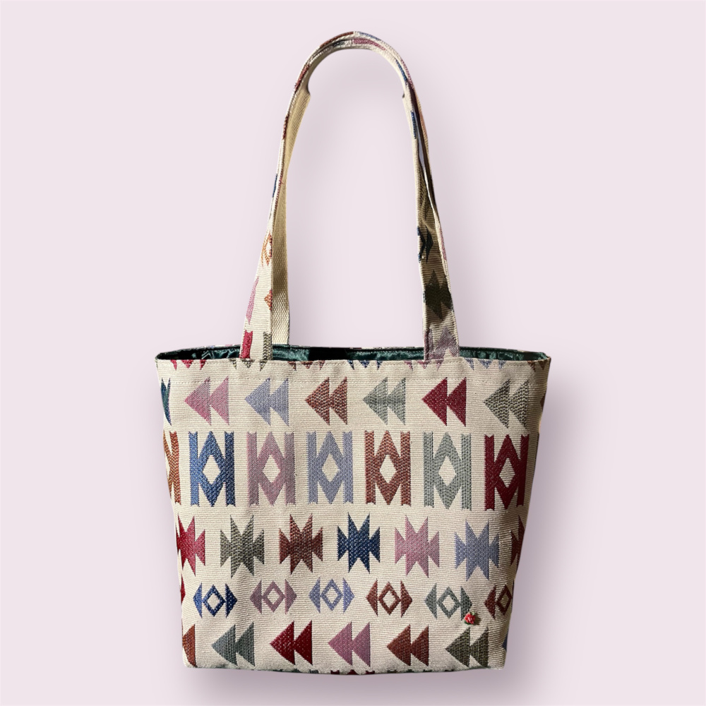 In pesante tessuto impermeabile o in gobelin fantasia, ampie e leggere sono borse da portare ovunque. Eventuale sacchettino in tinta (del medesimo tessuto) consente di portare il pranzo in ufficio in un’unica borsa. Disponibile in vari modelli, con o senza tre grandi tasche sul davanti e due sul retro. Interamente foderate con una piccola tasca all’interno e un bottone a calamita come chiusura. Misurano L38 cm. H28 cm, profondità 10 cm. (sono possibili misure su richiesta). I manici possono essere lunghi 21 cm. (come in foto) o 28 cm. per essere più comodi da portare a spalla. Possibili personalizzazioni con cifre o scritte ricamate sul davanti.